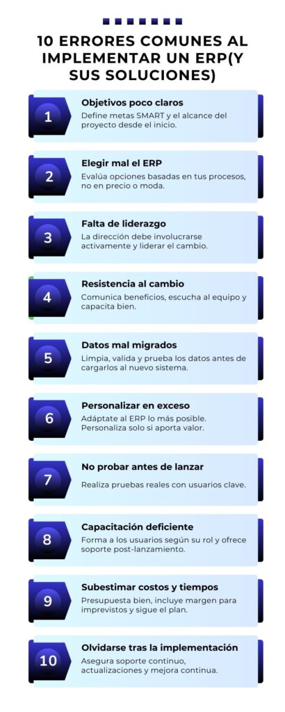 Implementar un Sistemas de Planificación de Recursos Empresariales (ERP) es un proyecto clave que puede transformar por completo cómo trabaja tu empresa y cómo toma decisiones. Pero también es fácil cometer errores costosos si no se aborda correctamente.